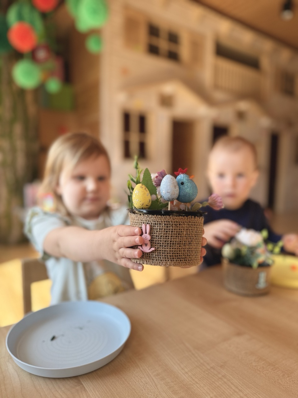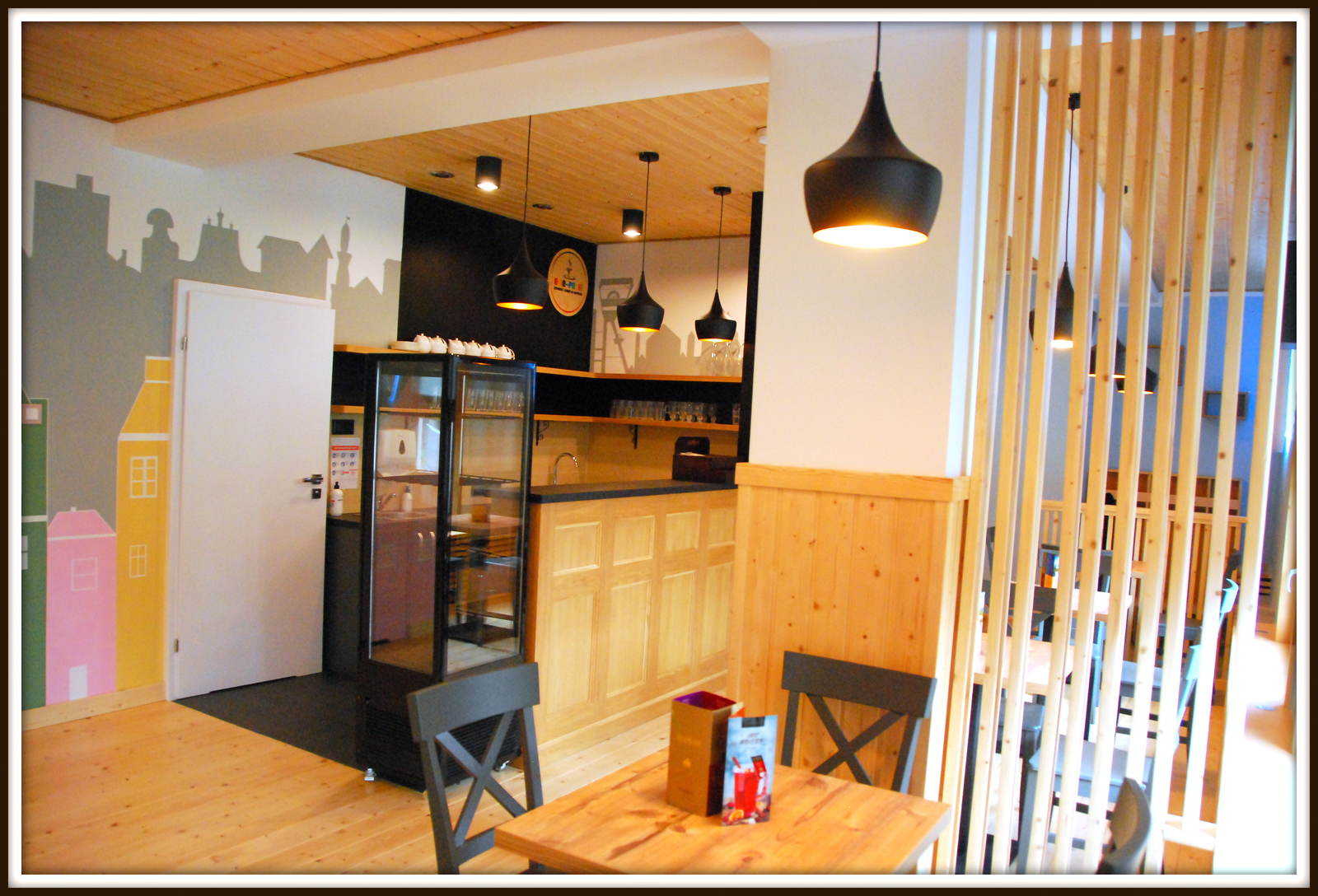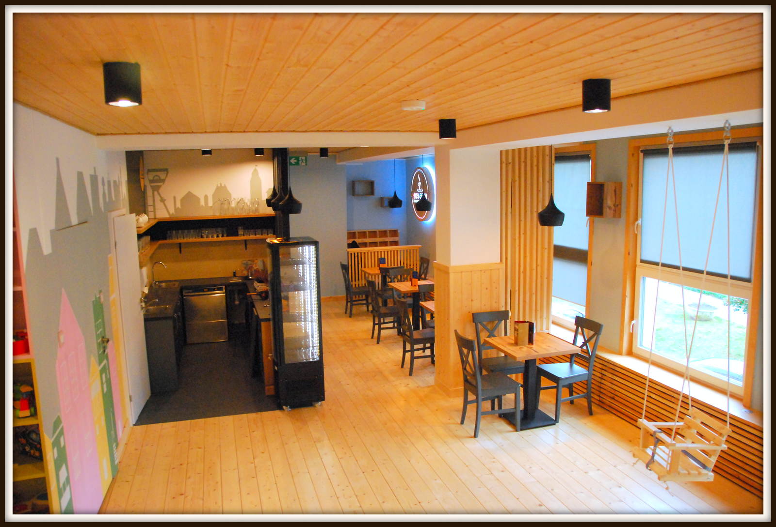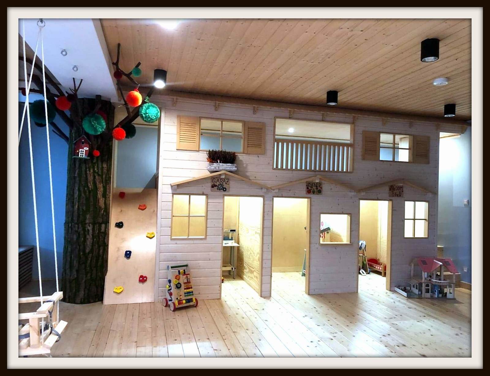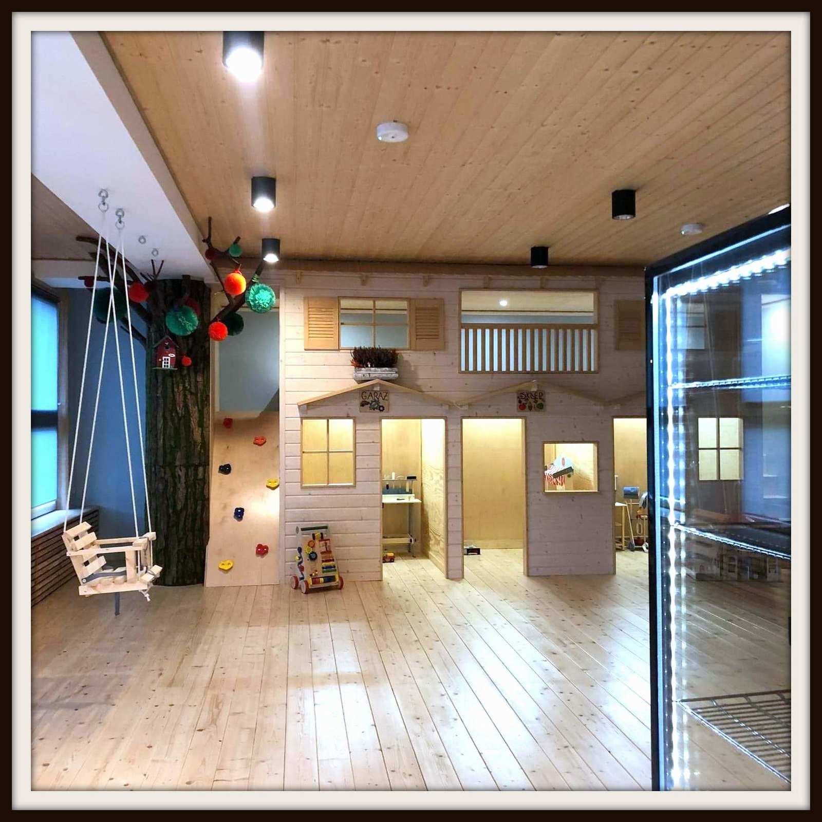 NATURALNA I DREWNIANA PRZESTZREŃ Kawiarnio – bawialnia Ecie-Pecie to miejsce szczególne, nie ma tu typowych dla sal zabaw trampolin i basenów z plastikowymi kuleczkami. Całkowicie pożegnaliśmy „małpi gaj” na rzecz stworzenia stonowanego „drewnianego raju” w formie miasteczka dla najmłodszych. Przy tajemniczym drzewie zbudowaliśmy domki pełne inspiracji, tak powstał garaż z warsztatem, sklep spożywczy oraz dom. A tuż nad nimi tajemniczy stryszek pełen niespodzianek. Proponujemy dzieciom wejście do świata zabaw w odgrywanie ról pracownika warsztatu, sklepu lub maszynisty drewnianego pociągu. Zadbaliśmy również o sprzęty rozwijające ruchowo i manualnie. Wszystkie zabawki znajdujące się na naszym placu zabaw są wykonane z drewna, inspirowane Montessori i szkołą Wolfdorską. Każdego dnia w naszym mini kinie odtwarzane i czytane są bajki z rzutnika kliszowego. W czasie, gdy pociechy oddają się zabawie ich opiekunowie w strefie kawiarni mogą się zrelaksować przy aromatycznej kawie i słodkościach.